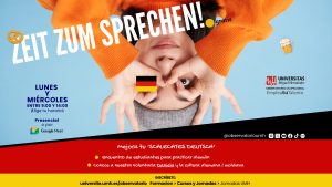 El Observatorio Ocupacional vuelve con nuevas ediciones del Taller «Zeit zum sprchen!» para que estudiantes y alumni UMH mejoren su «schlechtes Deutsch». En un ambiente informal podrás reforzar vocabulario y diálogo en alemán con Daniela, voluntaria de origen moldavo y conocedora del idioma. Las sesiones de «Zeit Zum Sprchen!»  tendrán lugar los lunes y miércoles en horario entre las 9:00 y las 14:00 horas, tanto de forma presencial como a través de Google Meet. ¡Tú eliges la hora y la modalidad!